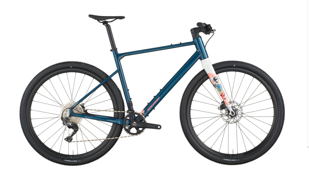 Zuverlässige und graveltaugliche Shimano GRX Komponenten gepaart mit 50 mm breiten Schwalbe G-One Reifen garantieren maximalen Spaß auf jeder Schotterpiste. Viele Befestigungspunkte an Rahmen und Gabel runden das Paket ab, ideal für Bike Packing oder wenn zusätzliche Ausrüstung mitgenommen werden soll.