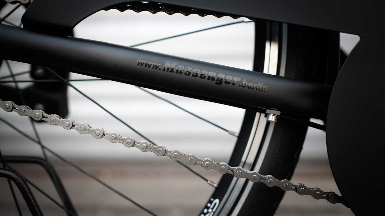 Massenger Bikes - Fahrräder & Lastenräder für Stadt und Land. Design, Funktion und Label stehen für den täglichen Einsatz und Nutzen für Radfahrende in Stadt und Land: mattschwarz, minimalistisch, sicher ausgestattet.