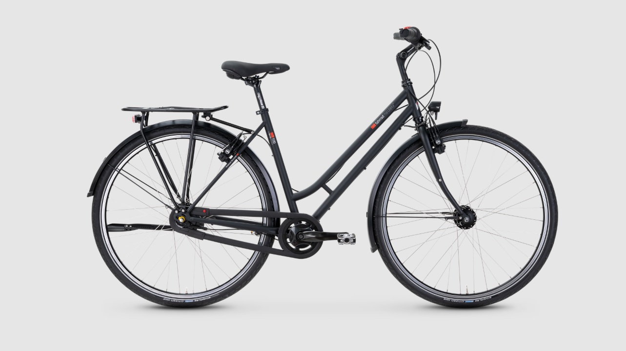 Konzipiert für den täglichen Einsatz bei jedem Wetter, ist diese Version des T-100 mit einer wartungsarmen 8-Gang-Nabenschaltung, einem vollgekapselten Antriebsstrang (Hebie Chainglider) sowie einer hydraulischen Magura-Felgenbremse ausgestattet. Das Zusammenspiel des CrMo-Stahlrahmens mit der umlaufenden High-End-Ausstattung sorgt für Langlebigkeit. Die Scheinwerfer und Rücklichter von Busch & Müller verfügen über eine Standlichtfunktion, sodass Sie auch dann sichtbar bleiben, wenn Sie im Dunkeln an einer Ampel stehen. Damit bietet der T-100 ein hohes Maß an Sicherheit, auch dank der beliebten Citizen-Reflexreifen von Schwalbe. Der T-100. Sicher und komfortabel.
