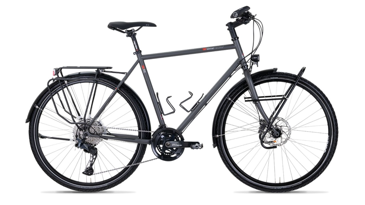Reisefertig ausgestattet – mit Gepäckträgern, Taschenaufnahmen, Flaschenhaltern, Busch & Müller-Lichtanlage, Schwalbe Marathon-Bereifung